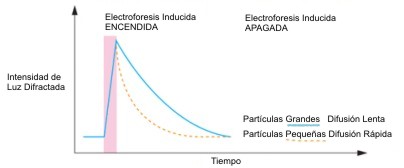 Es un principio de medición de partículas desarrollado independientemente por Shimadzu. El tamaño de partícula se determina en base al tiempo requerido para difundir la red de difracción formada a partir de nanopartículas usando dielectroforesis.
