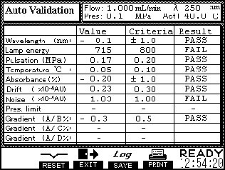 El LC-2010 dispone de una función de auto-validación que permite que cualquier operador pueda efectuar la validación usando el procedimiento más apropiado. La validación completa en modo isocrático se completa en 90 minutos, y en modo de gradiente en 3.5 horas.