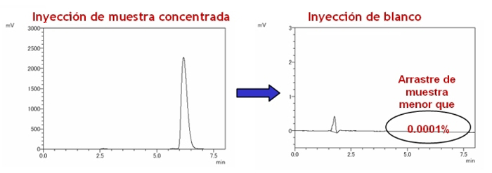 Diversas mejoras en el diseño y en la fabricación de los muestreadores automáticos permiten llegar a valores de arrastre entre muestras (carryover) de menos de 0.0001% aun para muestras fácilmente adsorbidas como clorhexidina. Esta performance es adecuada para LC-MS.